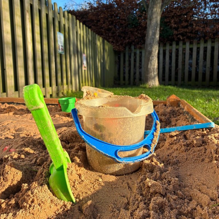 Our outdoor area is open throughout the session, offering a range of engaging toys such as cars, bikes, a sandpit, and a mud kitchen.